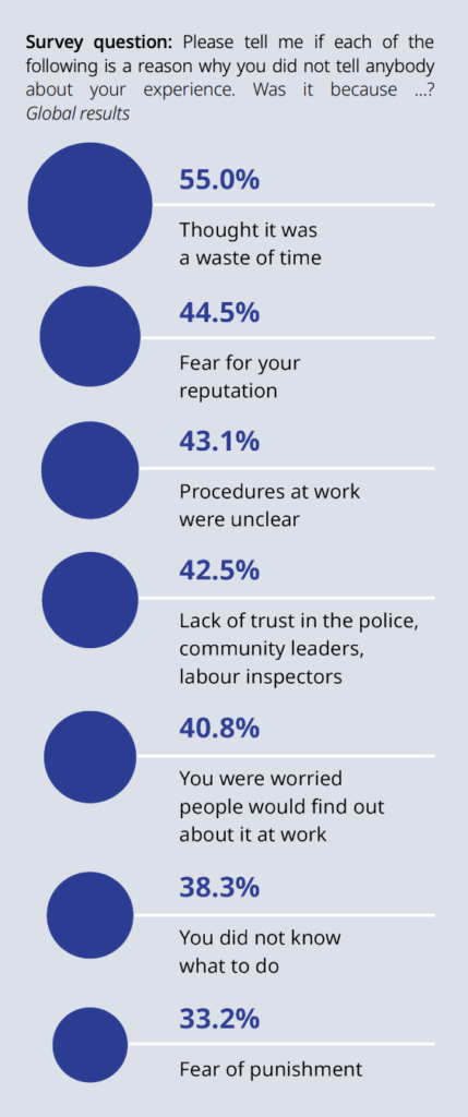 Source: ILO, LRF, Gallup, Experiences of violence and harassment at work: A global first survey