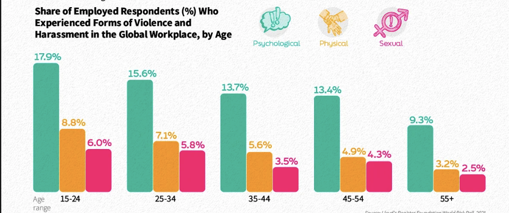 Younger workers are also more susceptible to workplace harassment and violence than their older colleagues.