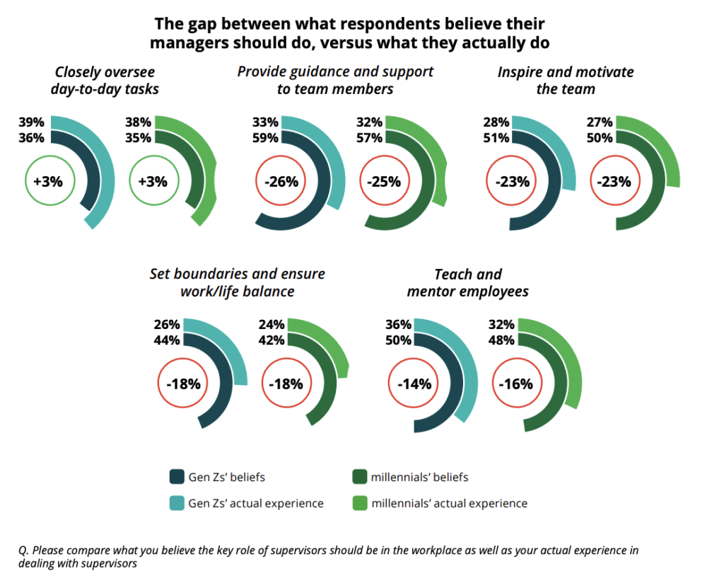 But just money might not entirely cut it to engage and make the Gen Z workforce productive. As per studies, 43% of Gen Z workers in the UK would take a pay cut for better opportunities. This indicates the ambition for growth among Gen Z but along lines of success that are very different from previous generations. Gen Z looks at soft skills, time management and industry-specific knowledge as the main drivers of their growth. 86% of them feel that mentorship and guidance from their managers is what will get them where they need to be. But managers do not seem to know this, are hesitant to act or simply do not have the time to engage with their teams in this way.