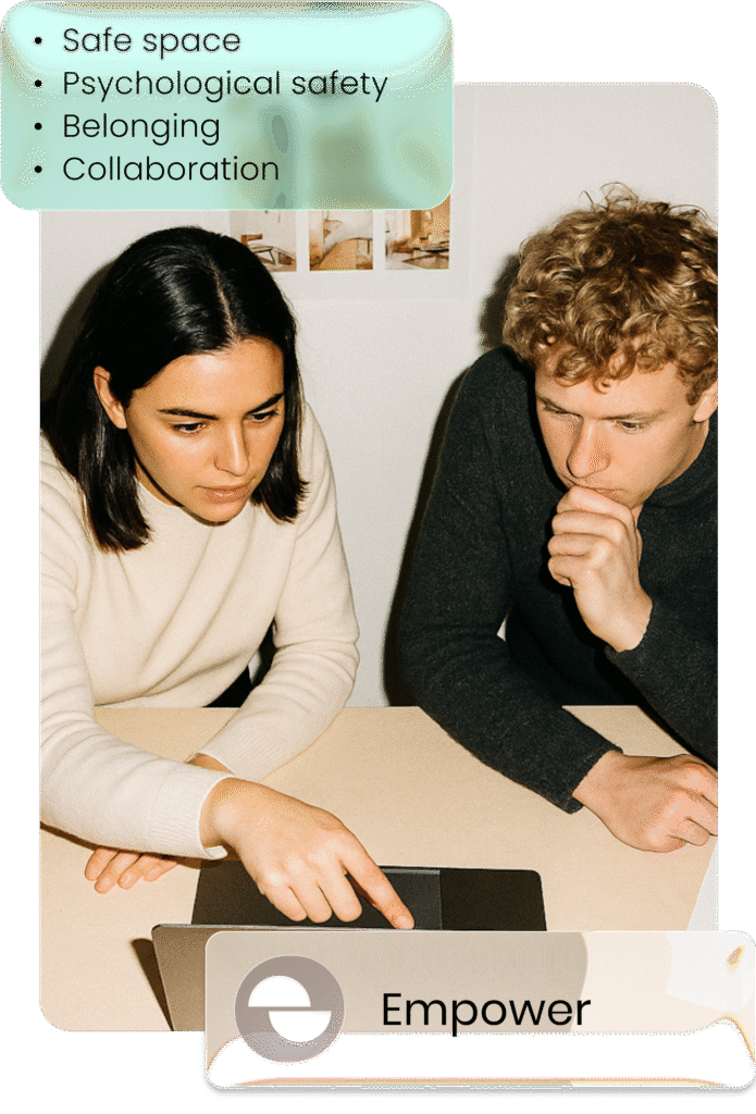 We help hybrid teams work confidently across locations, giving feedback, spotting bias, and maintaining high performance. Serein builds hybrid team habits through gamified e-learning, helping teams practise feedback safely, identify bias in real time, and build trust through regular check-ins. Teams learn to communicate openly, challenge respectfully, and align on shared goals, reducing silos, accelerating collaboration, and boosting accountability and overall performance.