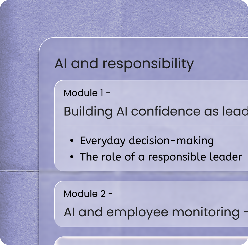 Scenario-based e-learning resources that translate abstract AI ethics into day-to-day decisions, helping large workforces navigate transparency, and accountability.